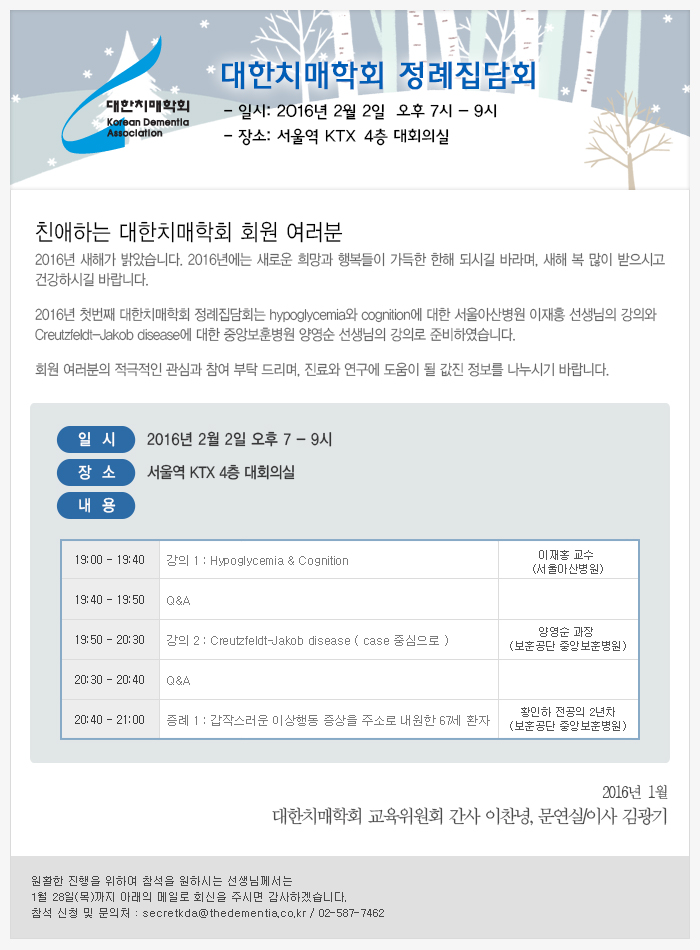 대한치매학회 2월 정례집담회 안내