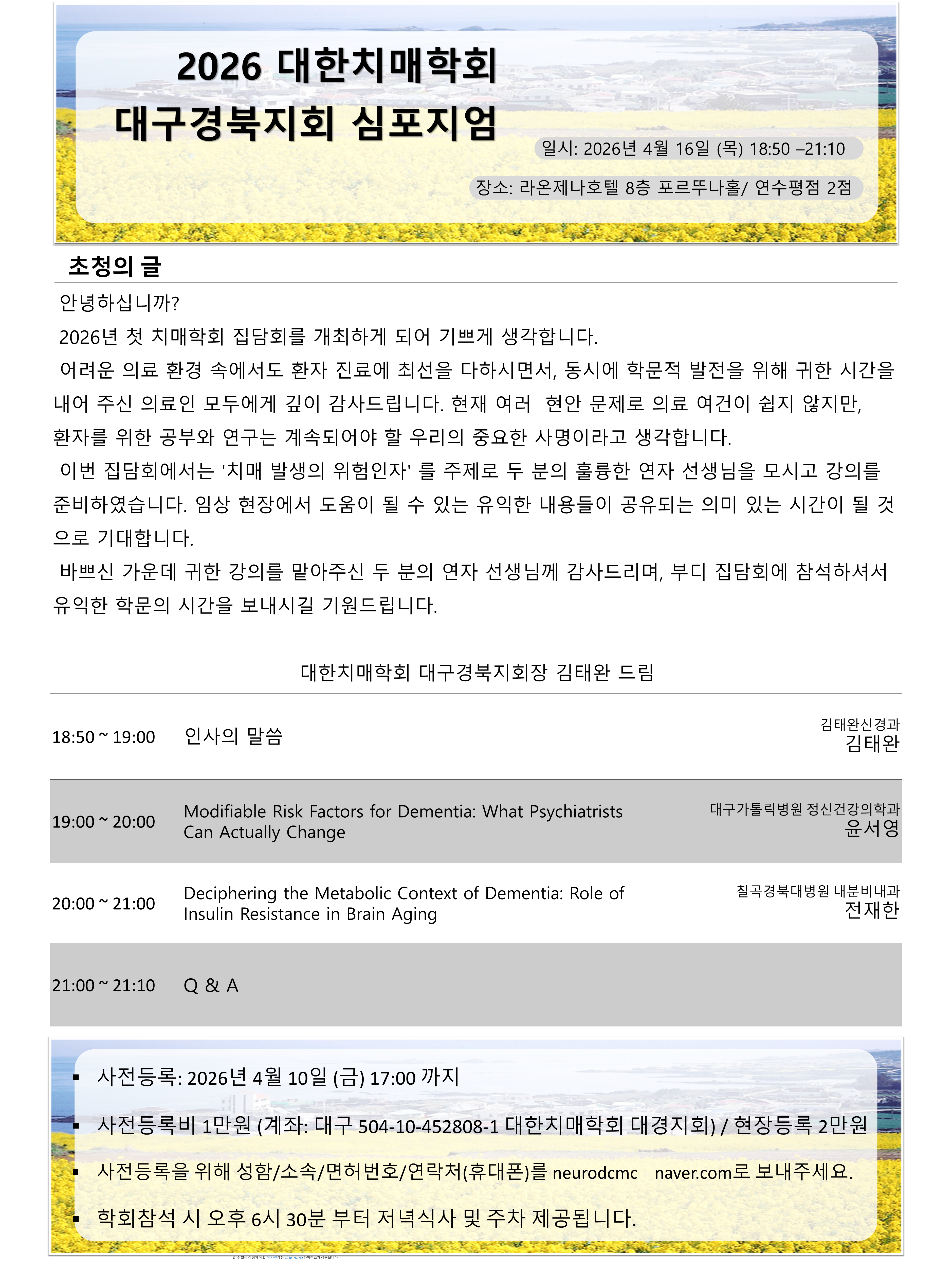 2026 대한치매학회 대구경북지회 심포지엄